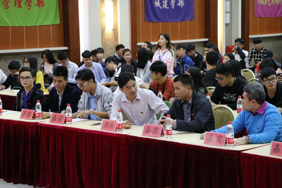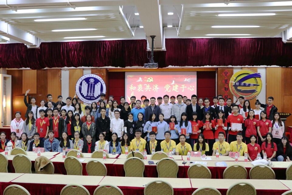 2017年11月28日晚上7:00,城建和经济学部于三号报告厅举行了党团知识竞赛决赛。参与本次活动的嘉宾有学院党委书记刘怡军、城建学部党总支书记蔡凯武、经济学部党总支书记吴贤、学院团委老师莫浩明、城建学部团总支书记卢境志、经济学部团总支书记李梅、城建学部党建指导老师余栋凯、经济学部学生党支部书记方惠英、经济学部老师钟云珊和城建学部以及经济学部的主席团和学生会的部长们。本次党团知识竞赛的主题是和衷共济,党建于心——共祝十九大。
