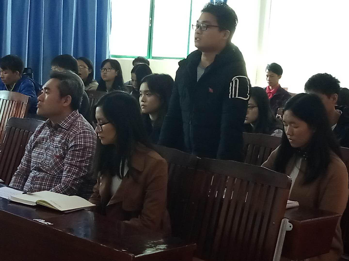 2017年12月22日中午11点整,经济学部党总支学生党支部于2号教学楼304教室召开了通表大会。出席本次会议的有:经济学部党总支书记吴贤、学生党支部书记方惠英、13级、14级、15级的正式党员与预备党员、发展对象、经济学部党务秘书。