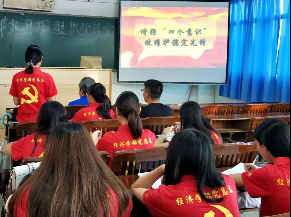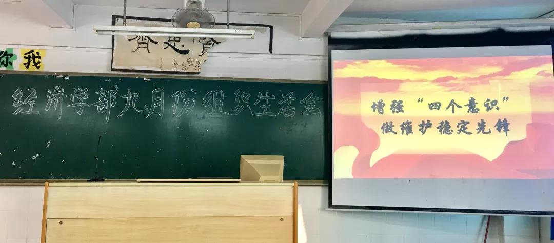 2018年9月28日,经济学部党总支学生党支部在二号教学楼408教室,召开了以“增强‘四个意识’,做维护稳定先锋”为主题的党支部生活会。出席本次会议的有:经济学部党总支书记吴贤、16级全体学生党员以及党务工作者。