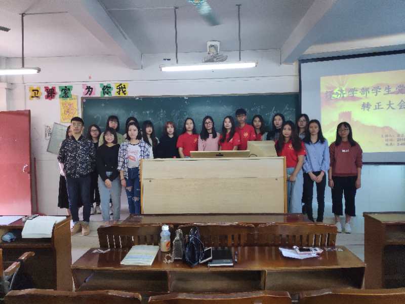 2018年12月13日中午12时,经济学部学生党支部在2-408召开通表暨转正大会。出席本次会议的有经济学部学生党支部书记方惠英、正式党员、预备党员、发展对象及党务工作者。