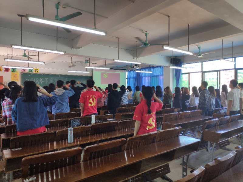 大会第七项,重温入党誓词。在谢婉雯同志的领誓下,所有预备党员和正式党员集体重温入党誓词,面对党旗他们庄严宣誓。相信他们不管在何时何地,在校还是参加工作,都会时刻记得自己的党员身份,以一名党员的标准来严格要求自己。永远跟党走!