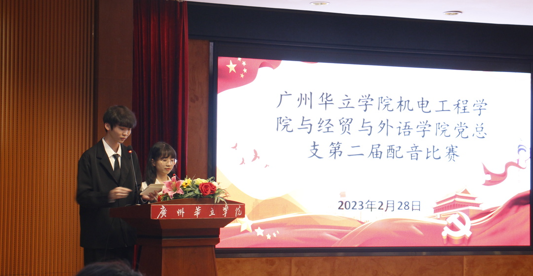 为了更好的开展党史学习教育,继承党的优良传统,加强思想道德理论武装,广州华立学院经贸与外语学院和机电工程学院于2023年2月28日19:00于图书馆二号报告厅联合举办以“青春之声,译革命精神”为主题的第二届配音大赛。参加本次大赛的人员有机电工程学院党总支副书记唐巍、经贸与外语学院党总支副书记林秋生、经贸与外语学院学生党支部书记卢结玲、机电工程学院党务管理办公室指导老师肖渲艾、全体学生党员以及党务工作者。