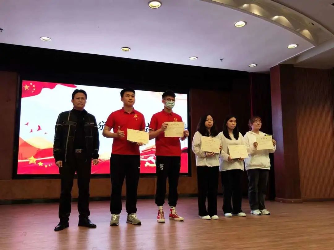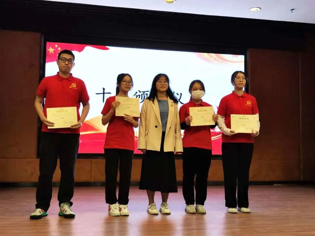 根据两轮比赛的评分高低选出本次比赛的一等奖、二等奖和三等奖,并由主持人颁布比赛的获奖名单,由唐书记、林书记和卢书记为获奖小组进行颁奖并合影留念。