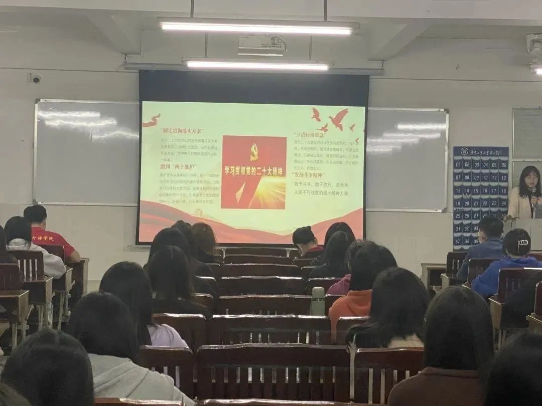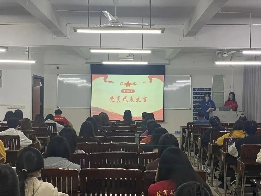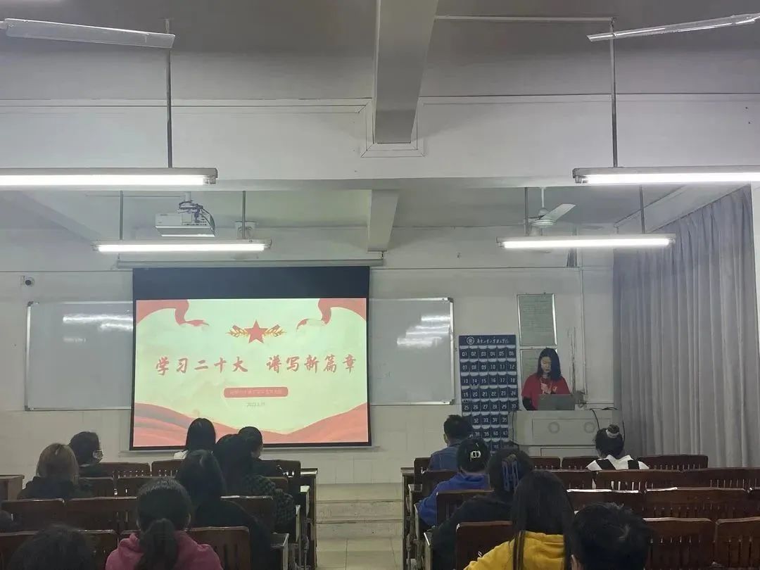 接着,由经贸与外语学院学生党支部书记卢结玲作开场发言,卢书记在发言中强调党的二十大是在全党全国各族人民迈上全面建设社会主义现代化国家新征程、向第二个百年奋斗目标进军的关键时刻召开的一次十分重要的大会,在政治上、理论上、实践上取得了一系列重大成果,作为青年党员,应全面学习、全面把握、全面落实党的二十大精神,团结一心、艰苦奋斗。