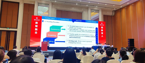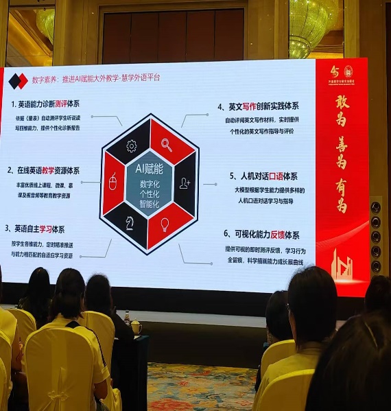 本期研修班内容丰富,设置了主旨报告、专题报告和“教学之星”大赛等环节。何莲珍教授在主旨报告中强调,大学英语教师应提升包括数字素养在内的五大素养,并介绍了浙江大学以 AI 赋能大学外语教、学、评一体化的创新实践。北京外国语大学张虹教授结合教材全面阐释了如何提升外语教材使用素养和效能。此外,外研社高等英语教育出版分社郭溪露讲解了全新升级的 U 校园智慧教学云平台 AI 版功能,山西财经大学张姝老师分享了以 U 校园 AI 版赋能日常教学的实践。