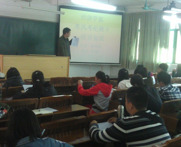 随着期末考试的临近,为了严肃考风考纪,广东工业大学华立学院经济学部团总支学生会于12月3号下午6点在2号楼208召开了考风考纪班干动员大会。参加会议的是经济学部党总支书记陈崇高书记以及经济学部11级、12级、13级的各班班长。