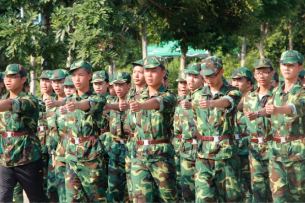 早晨,一缕阳光撒向训练场,华立湖的微风迎面吹来。伴随着微风,军训正式开始。绿茵茵的植物和橄榄绿的迷彩军装相互辉映,让同学们显得活力十足。一排排整齐的队伍正等待教官下发指令,随着教官的一声哨响,挑战毅力的一天才真正的开始。教官严格要求新生整理军容和端正军姿,不时亲自示范并手把手纠正基本动作,同学们在英姿飒爽的教官的带领下认真训练、丝毫没有半点偷懒。