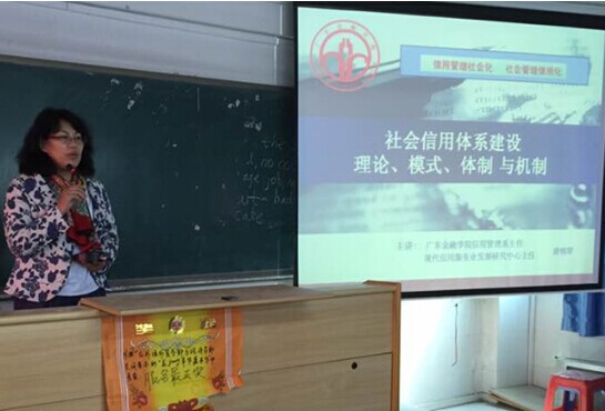 出本次讲座的主题——社会信用体系建设、社会管理信用化。随之,唐教授为大家指出了社会信用建设体