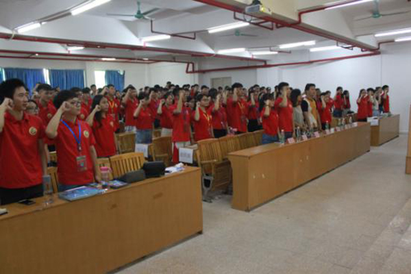 随后,主持人带领我们大家进行宣誓。“用我的认真努力,积极复习迎考。用我的自觉自律,维护考场纪律。用我的自尊自爱,参与公平竞争。用我的人格名誉,拒绝违纪作弊”。为表我们诚信考试的决心,各班班长、辅导员助理、党务、全体学生会成员依次上台签名,坚定我们诚信考试的信念。