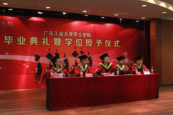 2016年6月25日下午13点30分,广东工业大学华立学院在一号报告厅隆重举行经济学等三个学部的2016届毕业典礼暨学位授予仪式。出席本次毕业典礼的领导及嘉宾有:华立学院副院长郭颂平教授、华立学院副院长温孝胜教授、华立学院王学军副院长、华立学院三个学部部长及学部教师代表。