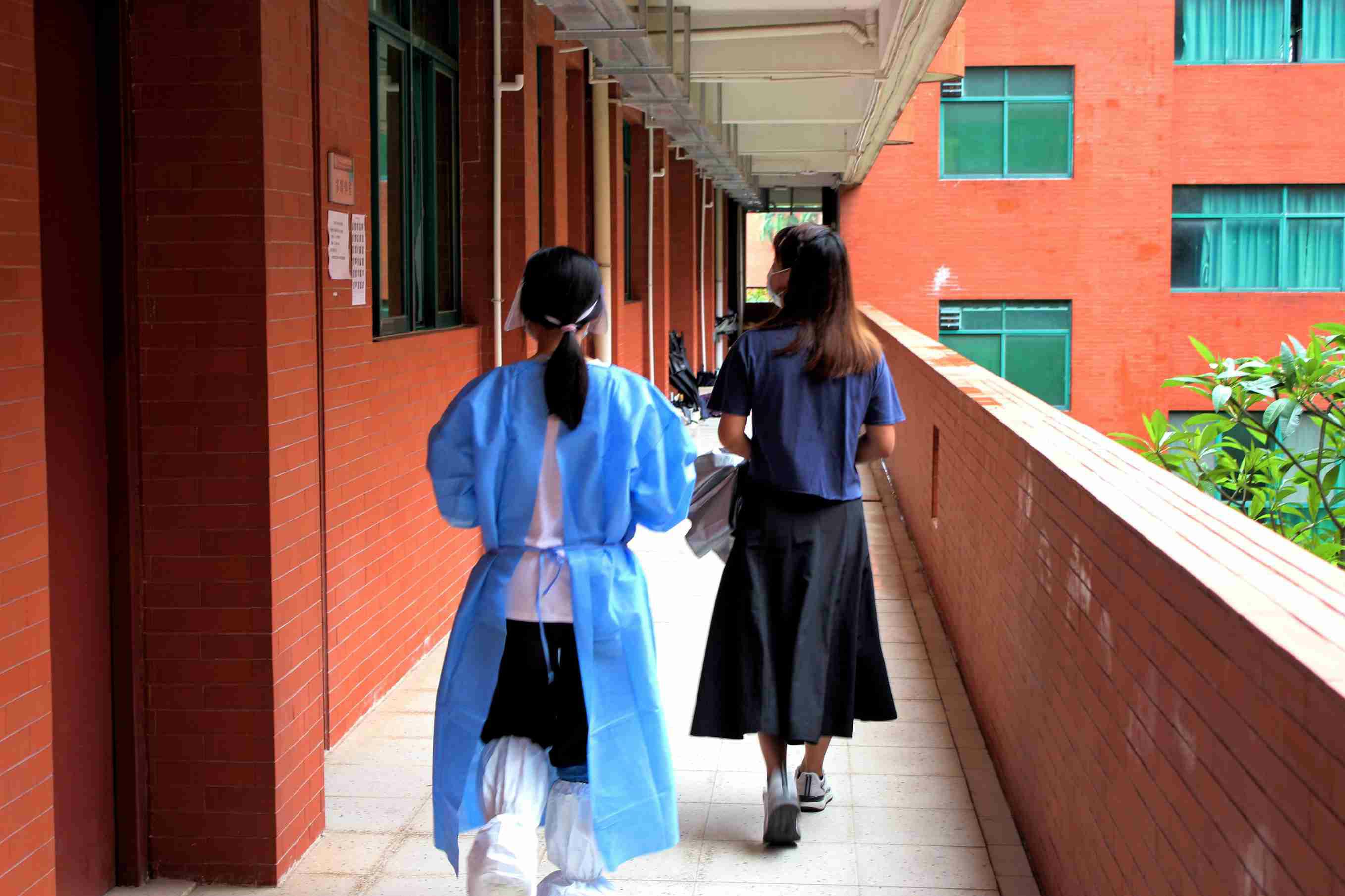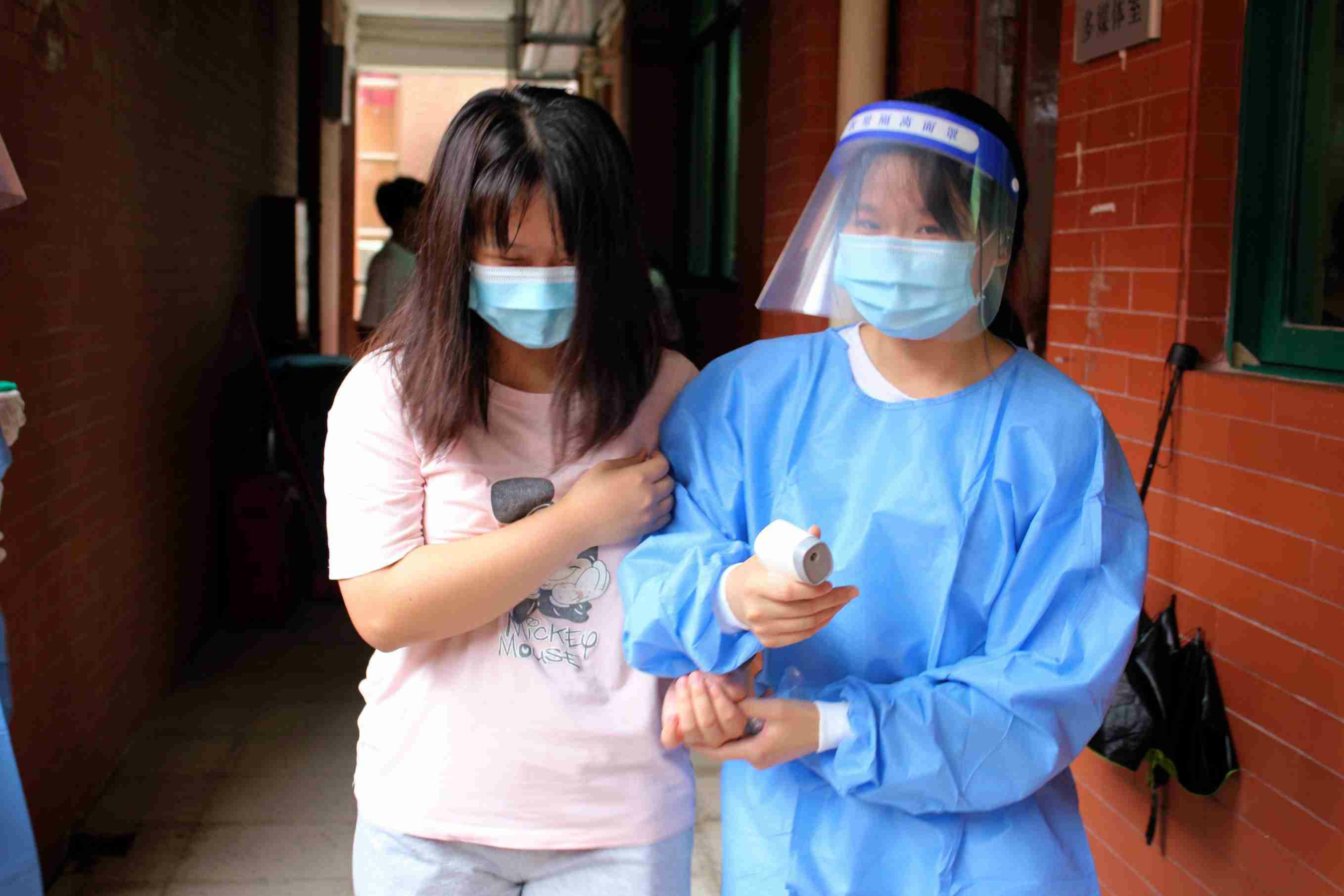 4. 发现体温发热的学生,由专人带至校门临时观察室,由校医再次对学生体温进行检测,更换口罩,登记信息,同时将此生经过的通道消毒。通知政府三人小组做核酸,研判。