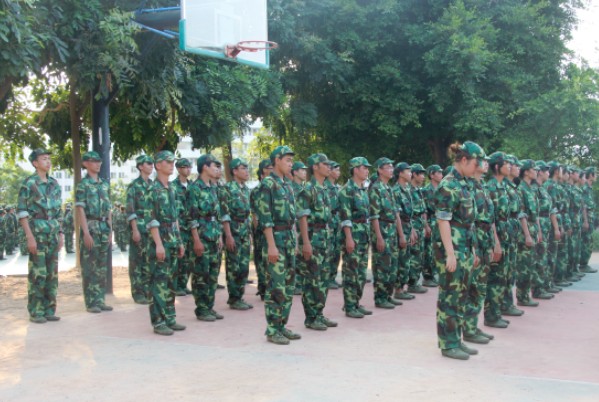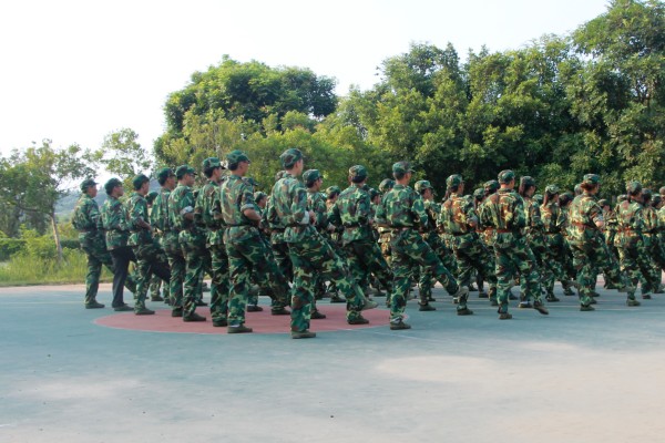 早晨,一缕阳光撒向训练场,华立湖的微风迎面吹来。伴随着微风,军训正式开始。绿茵茵的植物和橄榄绿的迷彩军装相互辉映,让同学们显得活力十足。一排排整齐的队伍正等待教官下发指令,随着教官的一声哨响,挑战毅力的一天才真正的开始。教官严格要求新生整理军容和端正军姿,不时亲自示范并手把手纠正基本动作,同学们在英姿飒爽的教官的带领下认真训练、丝毫没有半点偷懒。