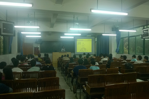 在宣讲会中同学们积极提问,主讲师耐心讲解,并积极号召同学们加入他们的团队。