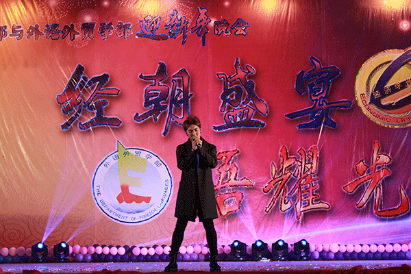 夜幕下,由音乐协会的开场秀为晚会拉开了帷幕。紧接着,董小麟院长上台为晚会致辞:他代表全院师生对今年迎新晚会表示热烈的祝贺,并提前祝贺全院师生新年快乐,希望全院师生在新的一年有新的开始,新的精彩。随后,由主持人宣布“经朝盛宴•语耀光芒”迎新年晚会正式开始。