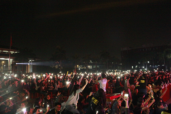 为迎接2016年的到来,经济学部与外语外贸学部于12月23日19:00在学院综合楼舞台联合举办了“经朝盛宴•语耀光芒”迎新年晚会。莅临本场迎新年晚会的领导和嘉宾有:院执行院长董小麟、院党委书记刘怡军、副院长高尧来、学生处处长李玉林、团委副书记赵小林、机电与信息工程学部党总支书记郭堪通、管理学部党总支书记李炽平、外语外贸学部党总支书记谌裕勇、经济学部党总支书记朱少先以及各职能部门领导和老师,另外还有外经贸艺术团特邀嘉宾,广东南方台节目主持人、广州新生代歌手、歌影视三栖发展的甜心先生梁山山。