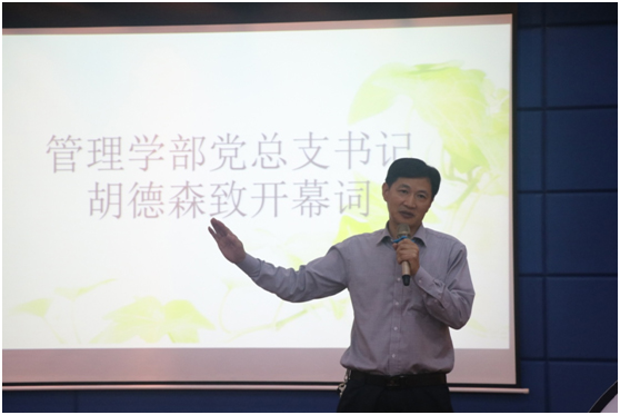 首先,管理学部党总支书记胡德森为本次比赛致开幕词。他表示,管理学部与经济学部有着深厚的友谊,此次比赛为两个学部搭建了相互交流、相互学习的平台。同时他结合当代中国的飞速发展,希望两个学部今后能够共同进步,取长补短。