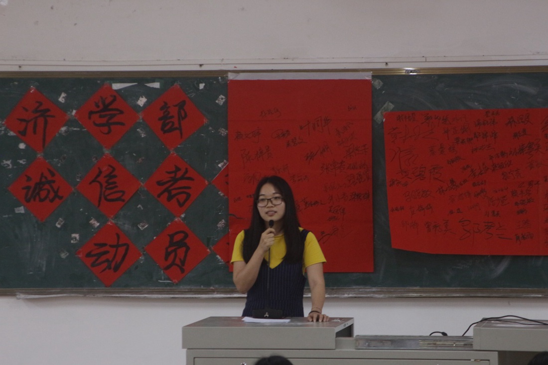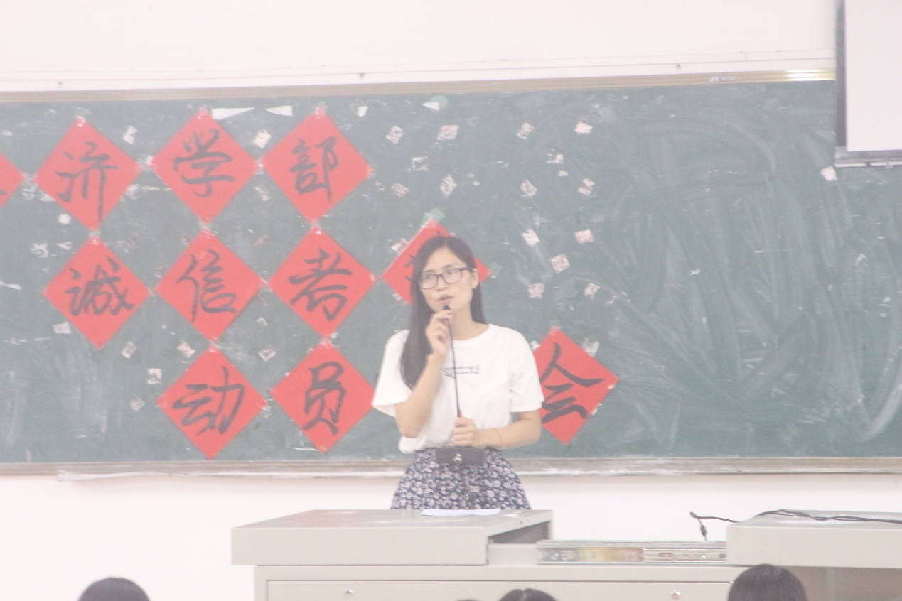 2018年6月13日晚上6点,经济学部于三号楼209课室举行诚信考试动员大会。出席本次大会的嘉宾有:经济学部团总支书记李梅、经济学部15、16级辅导员方惠英、经济学部老师钟云珊以及经济学部学生会主席团成员。