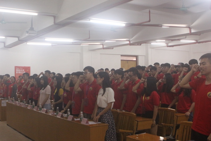随后,主持人带领参加会议的同学们进行宣誓。紧接着各班代表、党务代表、辅导员助理及学生会所有成员依次上台签名以示诚信考试的决心。举行签名仪式,目的是让同学们铭记以诚信规范自身,用诚信纯净考场。