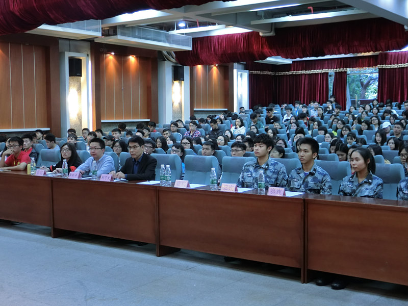 11月22日下午,学院党委邀请原中国人民武装警察部队126师副政委赵燕清大校来学院作讲座,题目为:学习贯彻习近平新时代中国特色社会主义思想,树立正确人生观。下午三点许,学院各学部约三百余名学生走入图书馆二号报告厅,一时间座无虚席。 本次讲座由学院党委主办,经济学部党总支承办,经济学部部长刘可夫教授主持讲座。经济学部副部长李炽平、张小飞、周佳等教师出席报告会。刘部长简要介绍了主讲嘉宾,在师生们的热烈掌声中,赵燕清政委登台开始他的颇具感染力的报告。