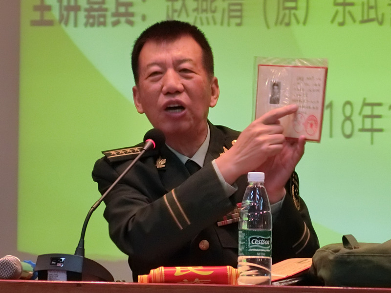 赵政委说:以前我们国家国力不强,工业体系不健全,长期以来不仅受到西方列强的欺辱,周边一些国家也时常挑事,侵犯我国边境。经过40年的改革开放,我们国家经济发展了,工业基础雄厚了,军事实力增强了,我国在国际上的地位提高了,但我们还要继续努力。赵政委教诲学子们要爱国敬业,为建设祖国勤奋学习。赵政委说:华立学院作为一所以工科为主的高校,同学们要树立爱国敬业精神,践行社会主义核心价值观,努力学习科学文化知识,掌握好工业技术,为建设我国强大的工业体系做出应有的贡献。赵政委在30多年的从军生涯中,不仅在边境作战中立下战功,也是部队建设的标兵,优秀的带兵干部,学习雷锋的楷模,为此获得中央军委及省市颁发的各类英模称号和奖励。
