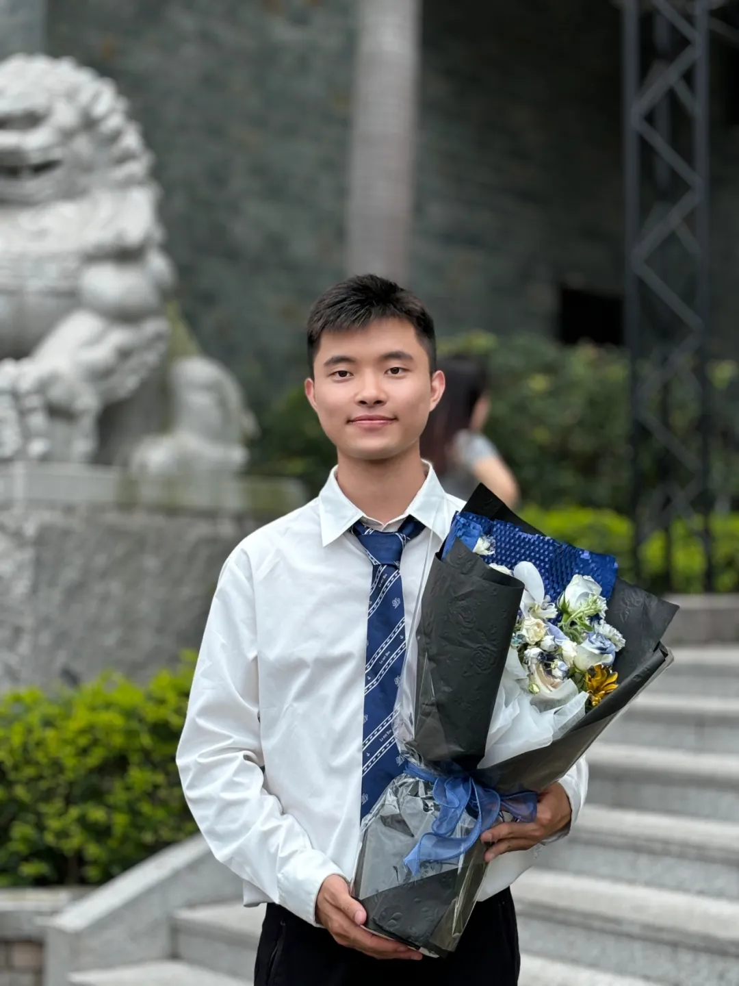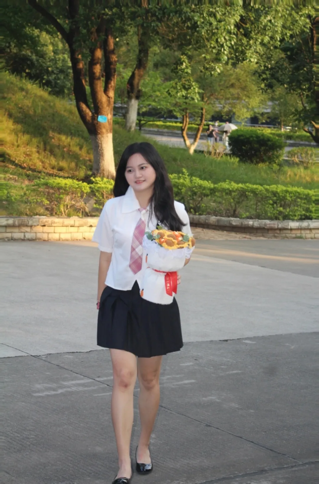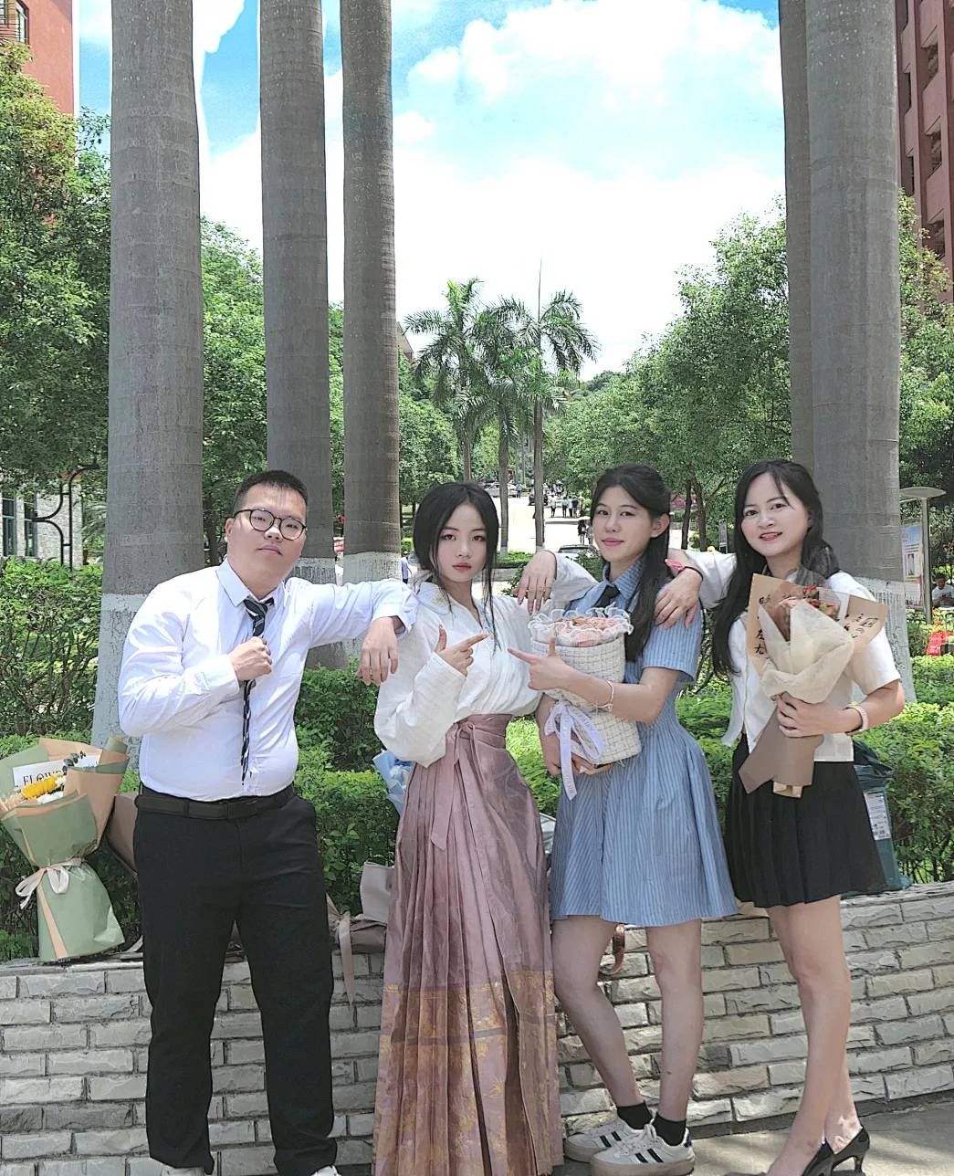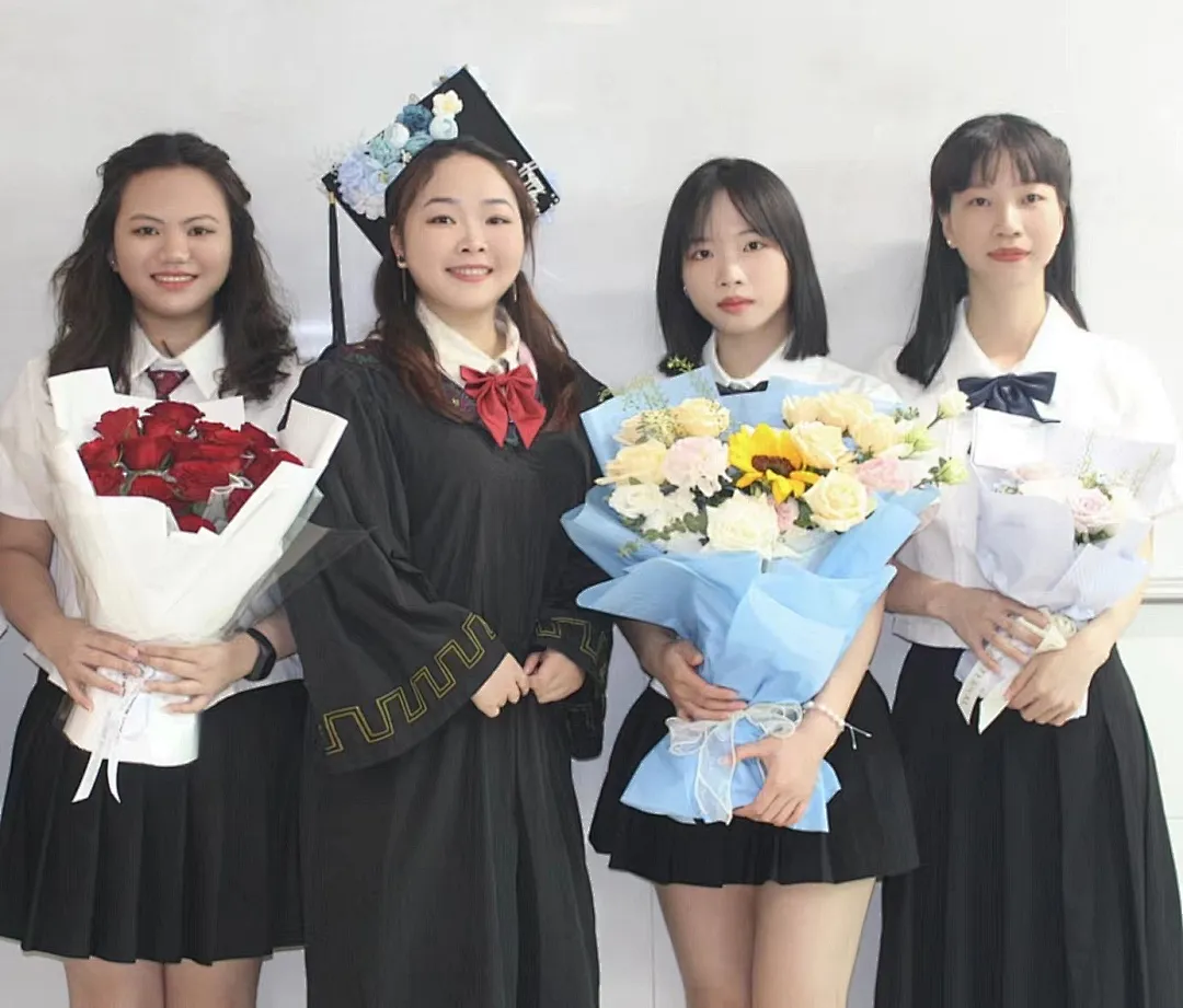 ⼿捧鲜花,琴瑟年华,跨出学校的⼤⻔,迎来崭新的未来,愿你前⾏的道路,繁花似锦,春暖花开。