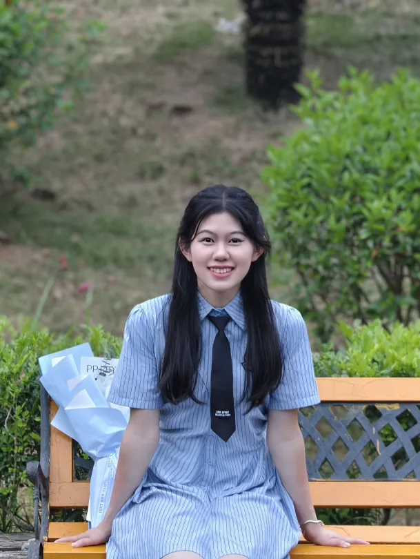 学校的树郁郁葱葱,⻓椅上的你恬静,淡雅宛如清晨的露珠静谧⽽澄明,从容的微笑,仿佛岁⽉沉淀的诗篇,相信在未来你亦能收获美好。