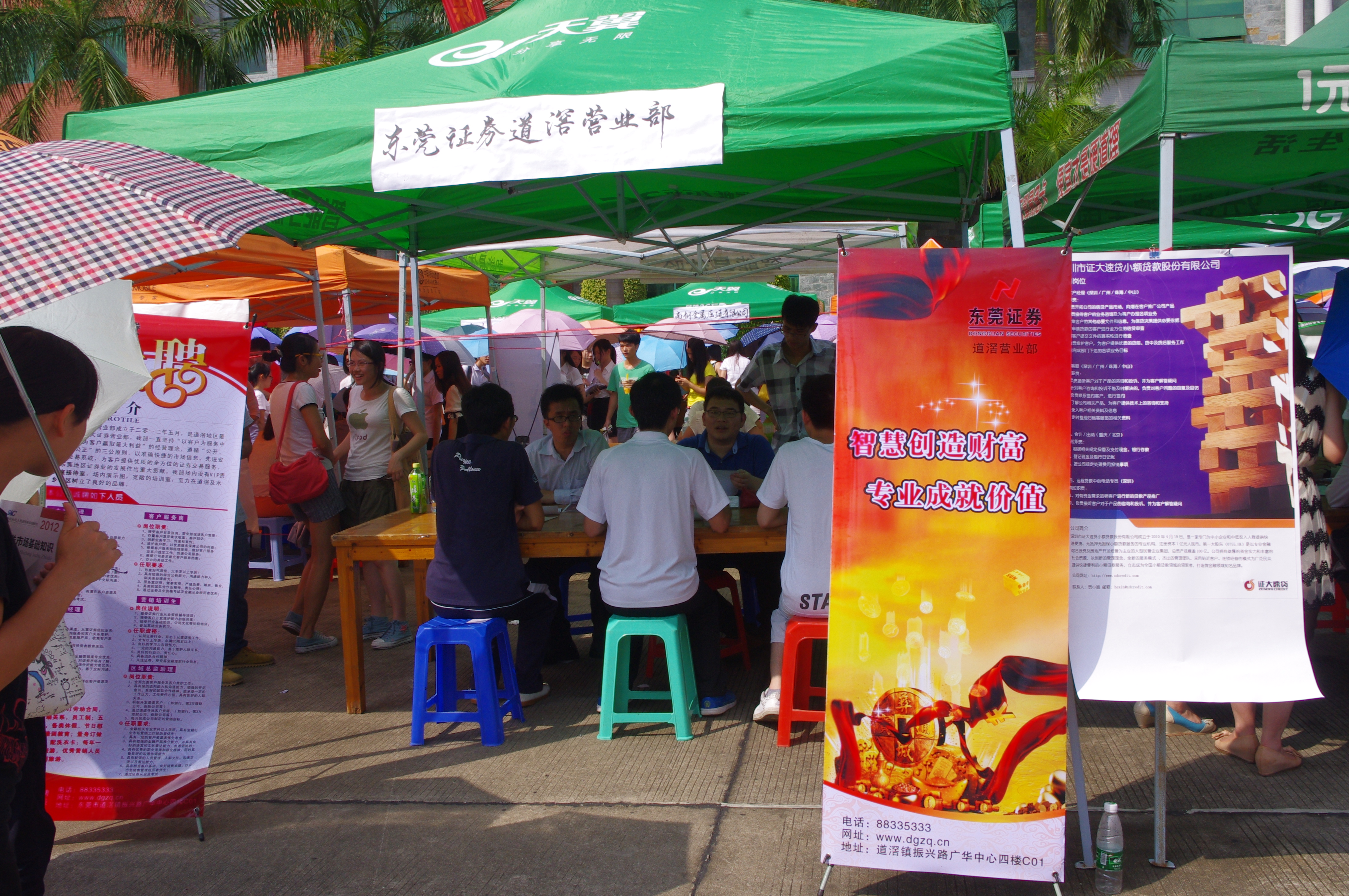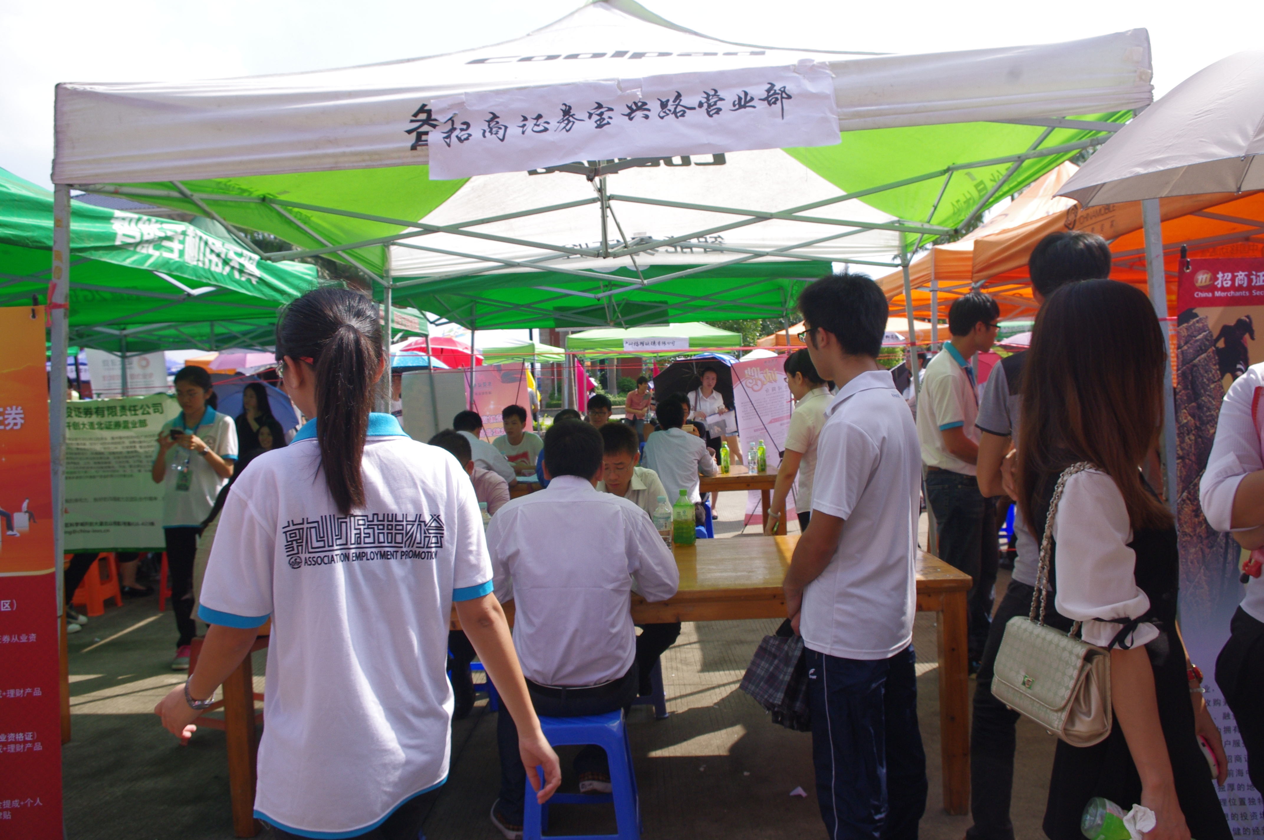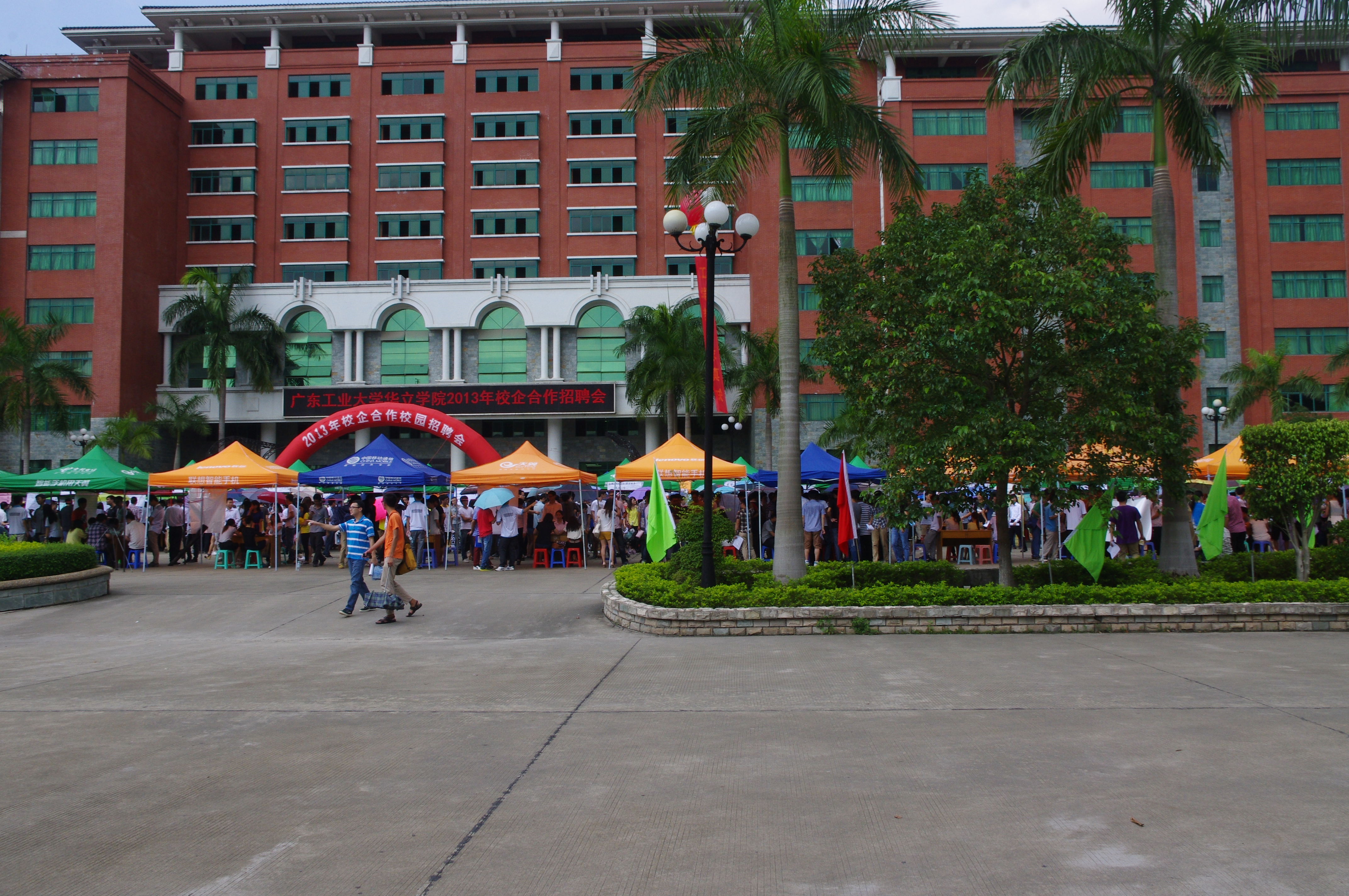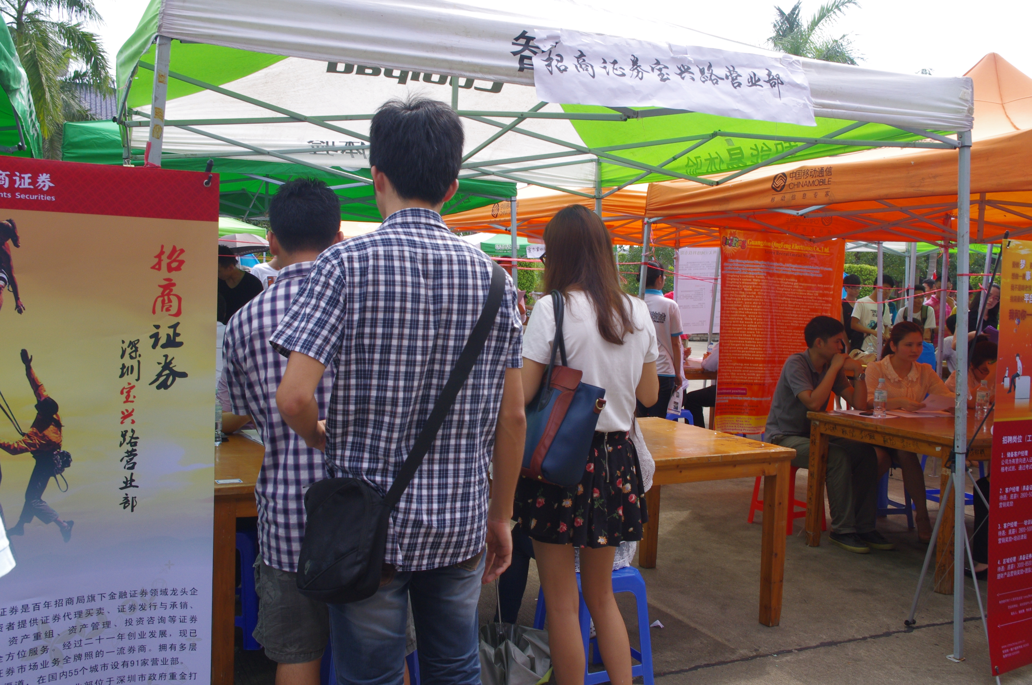 2013年5月29日下午,艳阳高照,综合楼广场前人头攒动,一片热闹非凡的景色。本届校园招聘会正式拉开大幕,近80家企业进场招聘。尽管天气炎热,学生和企业代表依然显示了充分的热情,特别是广东华南建筑设计院有限公司和广东省轻纺建筑设计院前面排起了长长的队伍,而广州大厦展位前面也逐渐排起了长队,海通证券广州东风西路营业部展位起虽然没有长长的队伍,但投递简历面试的学生也一直络绎不绝,其它证券公司的展位前没有很多人在排队等候,时不时也有学生投递简历进行面试。