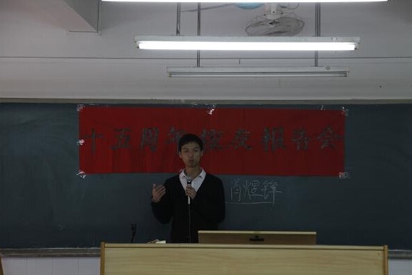 经济学部于12月15日15:30在2号教学楼208室召开了十五周年庆校友报告会。本次报告的主题为“成长、励志、成才”,我们有幸请到了09级校友肖煜锋作为报告的主讲人。肖煜锋的精彩报告充分突出了“创动未来,智汇今业”的口号。