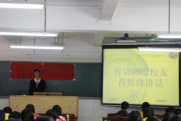 接着,肖煜锋就自身的经验与同学们探讨未来的创业:创业最重要的是刻苦的精神。无论做什么事都需要付出努力,创业路上也一样,只有真正付出自己的汗水才会收获更多的东西。还有,创业要注意团队精神,保持乐观的心态,学会苦中作乐。肖煜锋告诉我们,目前就业要找一个比较有前景的工作,而且要注意工作的技巧,学会灵活。最后在场的同学们向肖煜锋提问到读大学是否有用,肖煜锋明确地回答:读大学当然有用,不仅可以增长见识,还能提高个人素质。