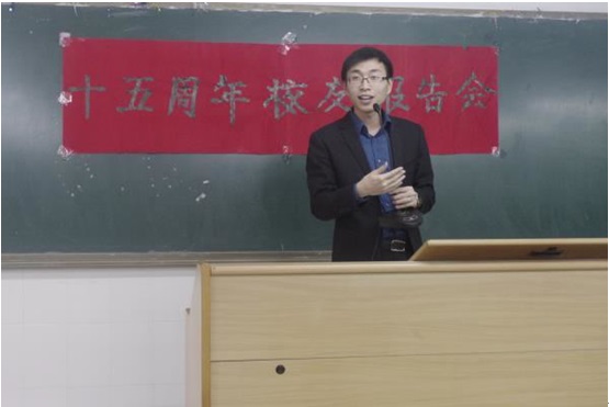 经济学部于12月23日15:30在2号教学楼301室召开十五周年校庆校友报告会第二讲,我们有幸邀请到07级校友符耀强作为本场报告会的主讲人,他就自身的工作经历出发、围绕报告会的口号“励志照亮人生,择业成就梦想”展开讲话。