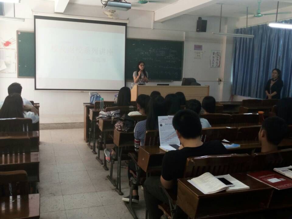 本次讲座主讲人为我院经济学部16届毕业生郑选萍。郑选萍曾在平安银行实习,但因某些原因其放弃了平安银行的工作,如今在首创证券公司后勤部实习。