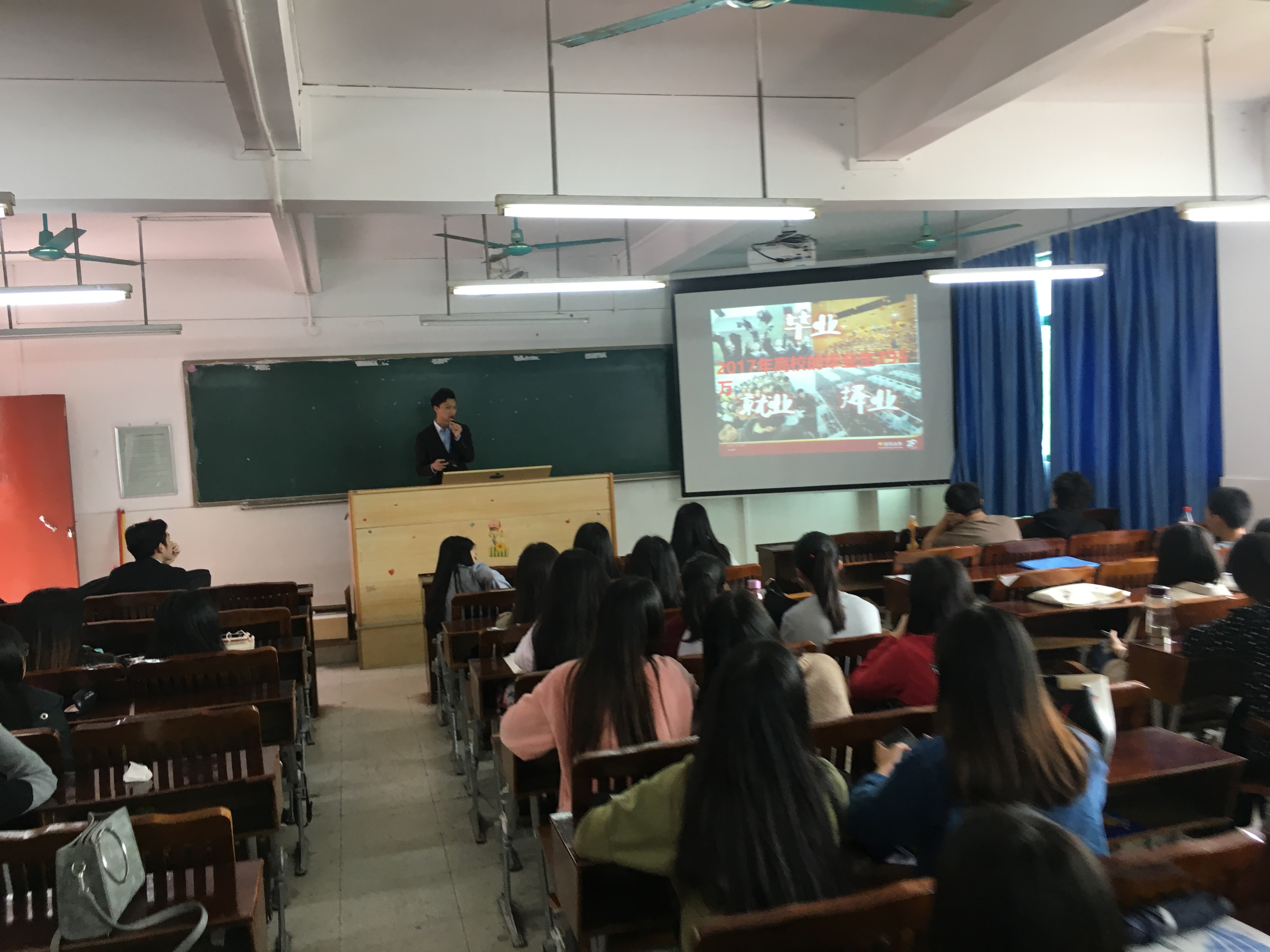 招商证券深圳深南中路证券营业部在经济学部为14级学生开就业讲座 来源: 发布时间:2017-03-23 00:00:00 浏览次数: 次 【字体:小 大】 招商证券股份有限公司深圳深南中路证券营业部的工作人员今天来到经济学部,为即将准备走出校门,踏入社会的14级学生召开就业讲座。 演讲人员为同学们介绍了如今金融行业的状况,并分析了其未来的发展状况,提醒同学们要选好行业,再选好公司,最后要选好岗位,求职中找准自己的定位很重要。 分享到: 【打印正文】