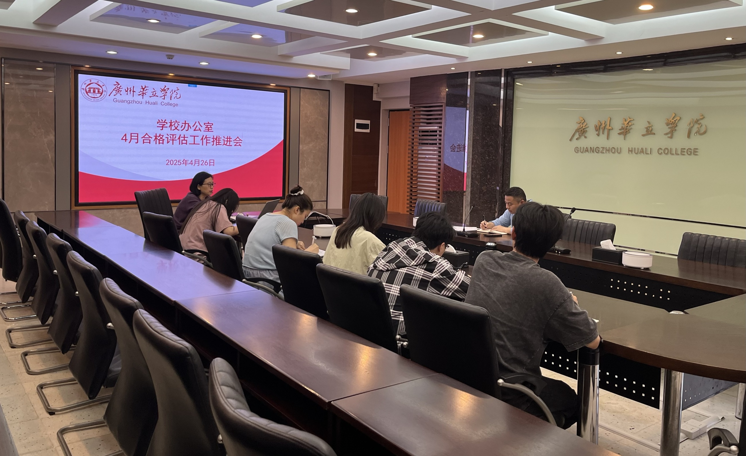 为深入贯彻落实学校合格评估工作部署,进一步强化责任担当、凝聚迎评合力,4月26日,学校办公室组织召开4月合格评估工作推进会。会议聚焦评估任务阶段性总结与部署,传达学校评估专员工作会议精神,分析当前工作进展与存在问题,并对5月份重点任务进行统筹安排。学校办公室全体成员参与会议。