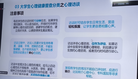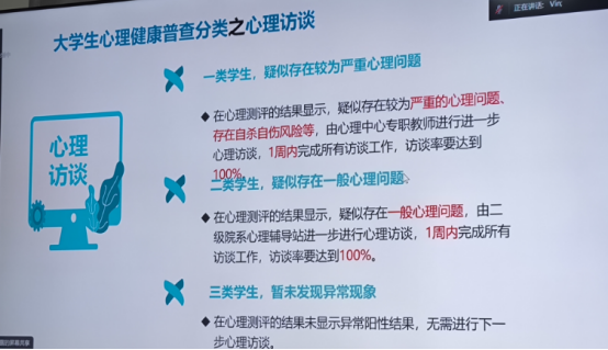 本次培训内容为心理访谈技能、校园心理危机识别等。