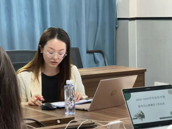随后,任静老师通过理论讲解与情景模拟相结合的方式,聚焦学生心理健康工作全流程,重点介绍几大核心模块(一)心理健康测评的操作规范与危机预警机制、(二)心理访谈的标准化流程及话术设计、(三)分级预警学生的分类干预策略。