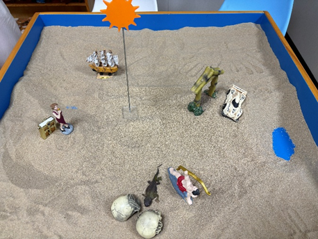 回顾团体成员用沙具重构团体历程:有人将首期“迷茫的帆船”替换为“太阳”,有人把散落的象征压力石块聚成阶梯。沙盘上的轨迹从碎片到连贯,具象化呈现认知跃迁。