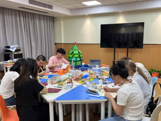 成员们对沙盘作品进行“改造”,变换位置、添加新沙具、沙具之间形成新组合…一幅新的“职业图景”呈现在大家眼前,此刻沙盘成为了动态的职业发展资源地图。成员们分享在整个构建过程中最触动自己的瞬间、最意外的发现以及对未来行动的新想法。