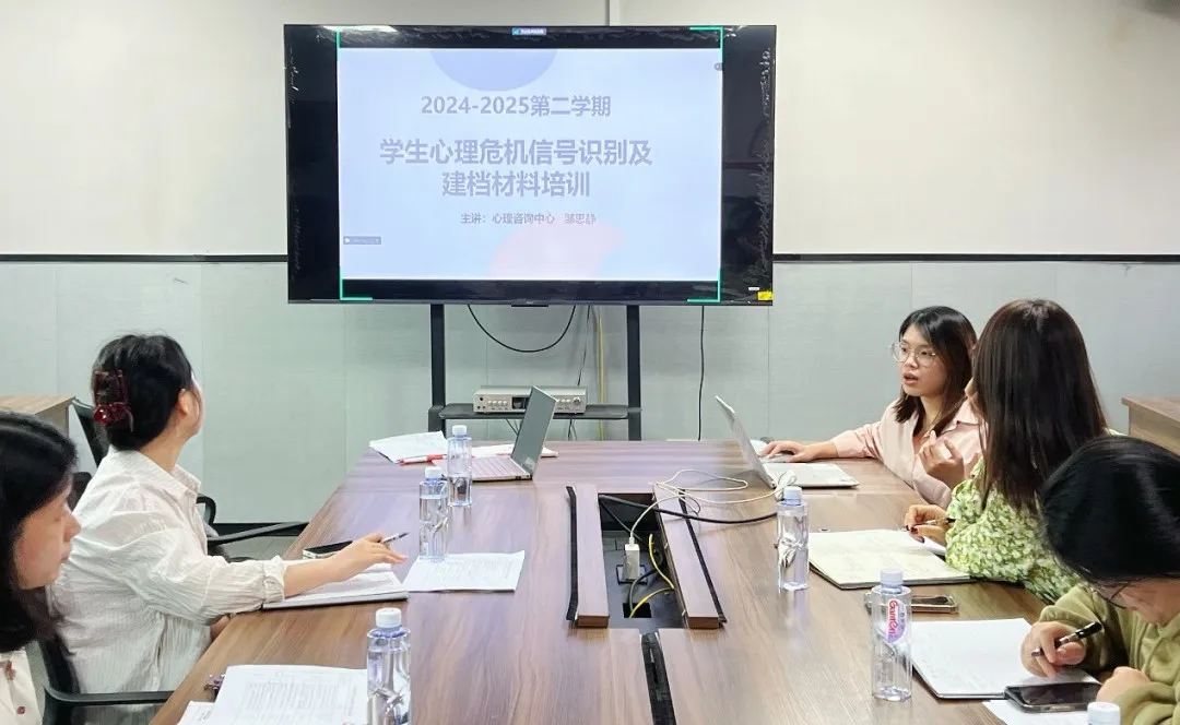 本次培训在第二教学楼619会议室举行,会议通过线上线下融合模式实现全员覆盖,江门校区通过腾讯会议系统同步参与。心理咨询中心全体专职教师、各学院心理工作负责人及新入职辅导员代表共一百余人参加培训。会议由心理咨询中心何冰雪主任主持,邹思静老师主讲,旨在系统提升辅导员队伍心理工作的专业化水平。