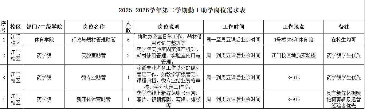 关于2025-2026学年第二学期广州华立学院(江门校区)勤工助学岗位的招聘通知