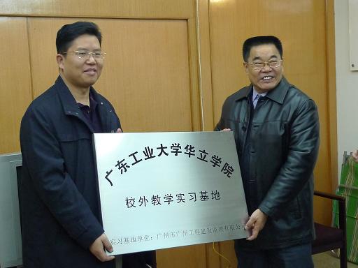 2009年11月19日,詹业宏常务副院长、王文光副院长、孙锦滔院长助理、建筑学部卢集富部长和宁培淋副主任一行到广州工程建设监理有限公司举行校外教学实习基地挂牌仪式,并聘请陈燕总工程师(高级工程师、国家注册监理工程师)为我校工程管理专业客座副教授。广州工程建设监理有限公司喻东风董事长、陈国东书记等公司领导进行了热情接待。