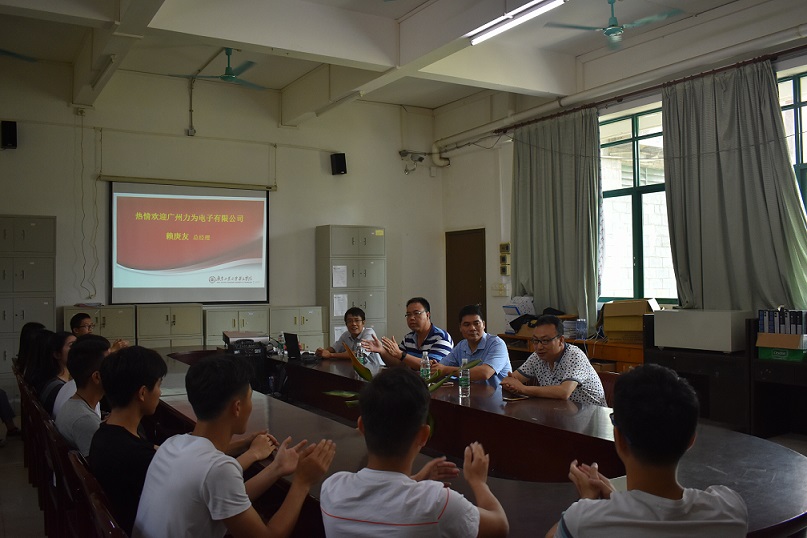 在交流会中,学生代表进行了发言,感谢广州力为电子有限公司对我院学子的资助,能获得这份奖学金很开心,往后会继续努力,不负领导的期望。
