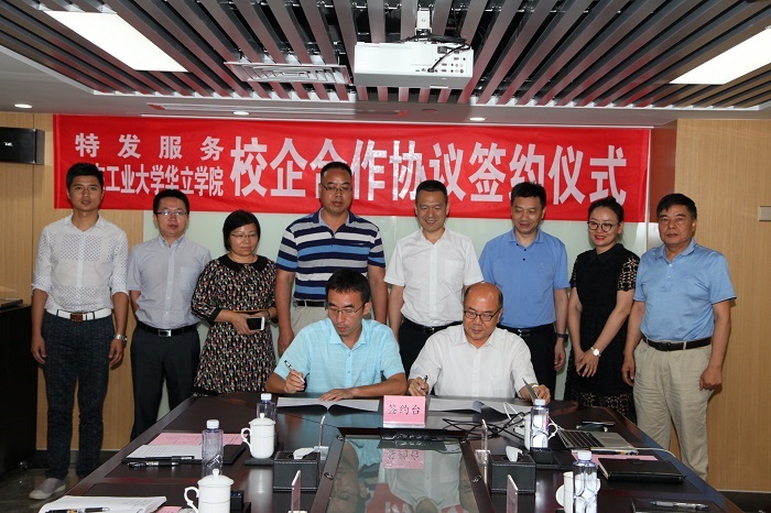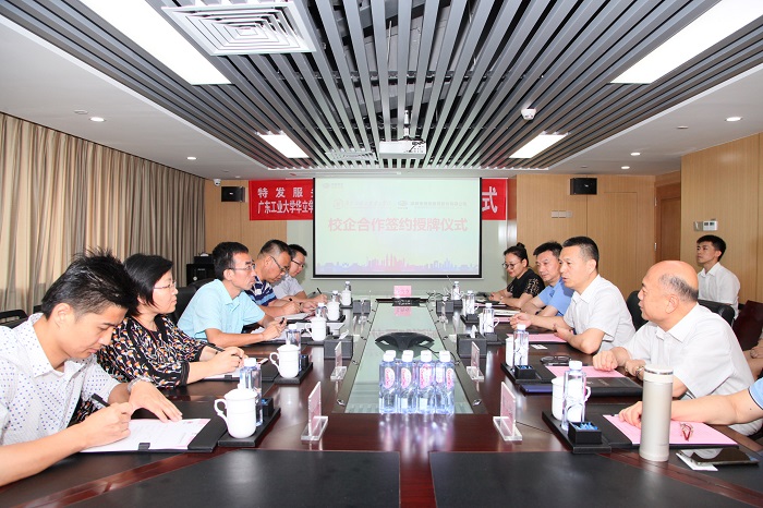 2019年6月10日上午,广东工业大学华立学院副院长王学军率队前往深圳市特发服务股份有限公司就校企合作进行座谈并举行协议签订及授牌。特发服务公司党委书记、董事长陈宝杰,党委副书记、总经理崔平,专职党委副书记周初新等领导与我院副院长王学军等人在特发服务总部会议室就行会谈,我院校外教学处负责人习宗德和会计学部负责人张丽宏等参加了会议。