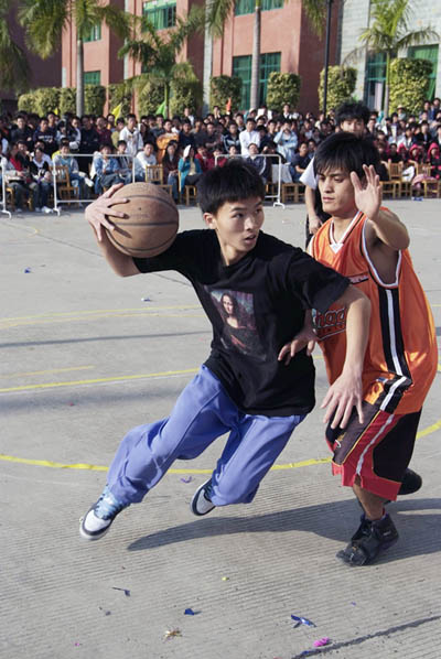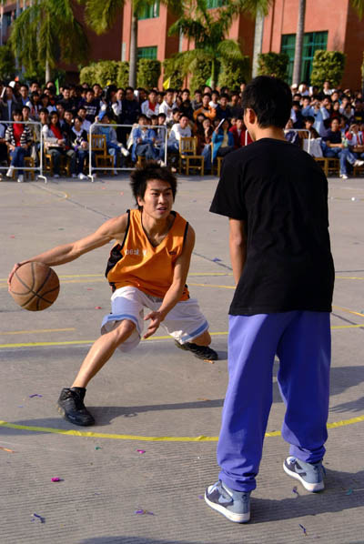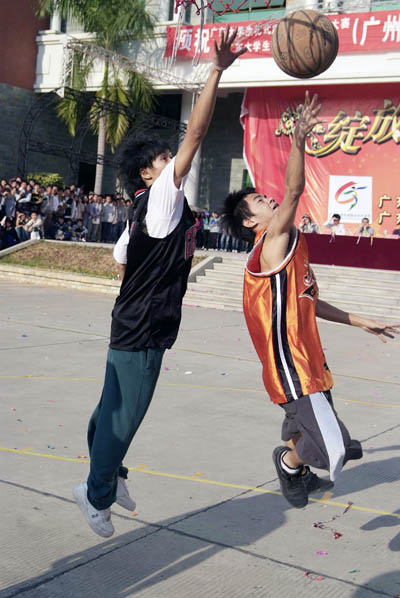 简短的开幕式之后,花式篮球暨啦啦队大赛正式开始,广东大学生电子竞技大赛参赛队员则奔赴专门的赛场投入比赛。