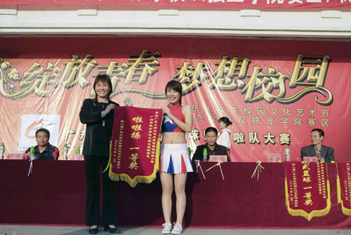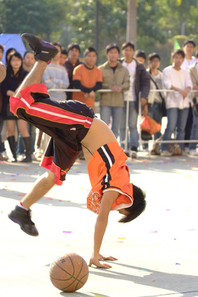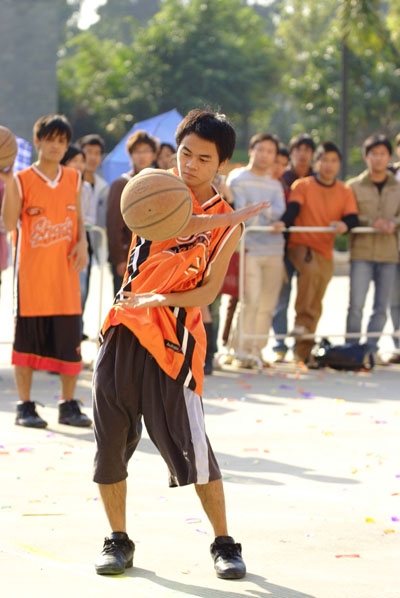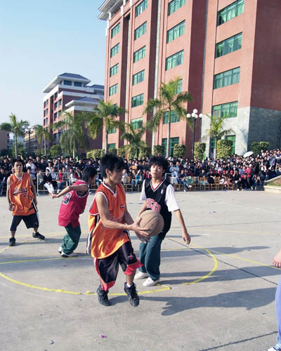 花式篮球比赛主要是广工大华立学院代表队与南华工商学院代表队的巅峰对决,比赛细项包括花式表演、三对一、一对一、灌篮等,每一小节赛程中间都穿插着华南农业大学珠江学院、南华工商学院、广工华立学院的啦啦操表演。南华工商学院以娴熟的技术、扎实的基本功赢得了现场观众的喝彩与掌声,广工华立高超的灌篮技术也引来观众阵阵惊叹,最吸引观众眼球的是一对一、三对一,也让现场的学生记者大赞痛快。南华工商的啦啦操阵容齐整风格火辣,广工华立的啦啦操以新颖的艺术创意获得了评委的高度认可,华南农业大学珠江学院的啦啦操尽管组队比较仓促但在赛场上也有不俗的表演。随着比赛的顺利进行,现场观众越聚越多,情绪激昂,氛围火爆,为了满足观众的需求,评审团特地安排各啦啦操参赛队伍在比赛后半段进行了汇演,以飨观众。最后,经过评审团评议,南华工商学院、广工大华立学院的篮球队双双获取花式篮球大赛一等奖,南华工商学院的啦啦操代表队荣获啦啦操大赛一等奖,广工大华立学院、华南农业大学珠江学院荣获啦啦操大赛二等奖。