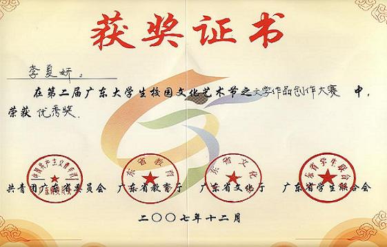 第二届广东大学生文化艺术共有18个项目,我院组织组织学生参加了书法、摄影、文学创作等10项目的比赛,经过努力,有以下项目获奖: