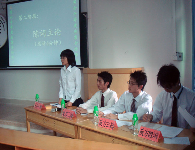昨天对陈的双方是管理学部代表队和机械电气学部代表队。双方围绕“男女平等更应该靠男性努力还更应该靠女性努力”的话题展开了精彩的辩论。经过四个环节近一个小时的唇枪舌剑,管理系最终获得了本场比赛的胜利。接下来其余6支队伍将在三场初赛展开角逐,取得胜利的队伍将进入下一轮的半决赛。