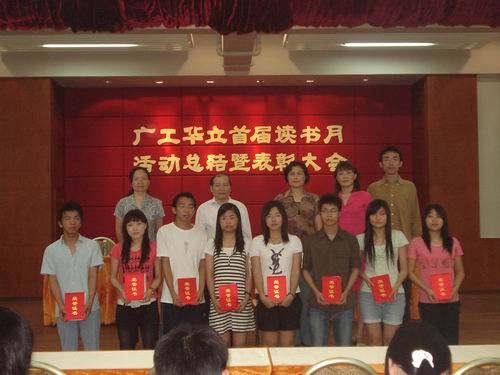 5月15日,广东工业大学华立学院首届读书月活动总结暨表彰大会在图书馆报告厅隆重举行。会议由图书馆馆长赖卫桥主持,学院邓则名副院长作读书月活动总结,院党委胡志先书记宣布首届读书月征文活动优秀作品表彰决定,学生处熊萍处长和王学军副处长出席会议,各学部书记、辅导员和参加征文活动的作者150人到会,邓院长对本次读书月活动所取得的成绩给予了高度评价。读书月活动不仅丰富多彩,而且进一步激发了同学们的读书热情。望大家今后继续多读书,读好书,为营造“书香华立,建设百年名校”作出新的贡献。会上为52位优秀征文作者颁发奖证和奖品。此次读书月活动在热烈的掌声中圆满结束,历时一个月的读书活动落下了帷幕。