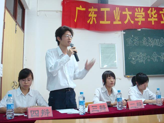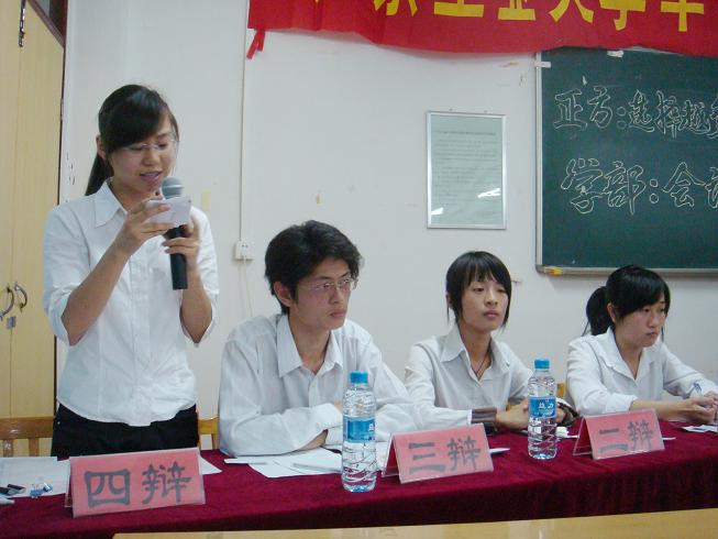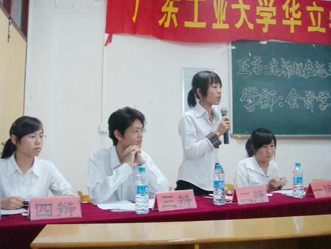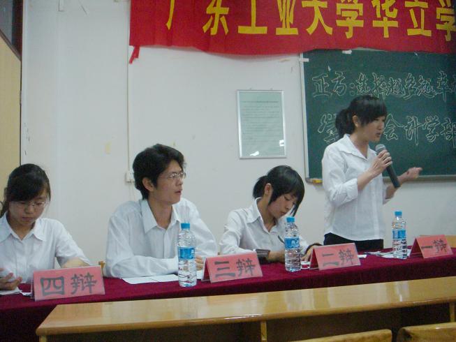 由学院团委主办的第五届校园辩论赛总决赛于2008年5月29日晚上07:00时在五号楼608课室举行。学生处王学军副处长、石俊杰教授、王能潢教授、方卿老师、邱四峰老师担任比赛评委。会计学部辩论队作为正方和反方建筑学部辩论队一决高低。