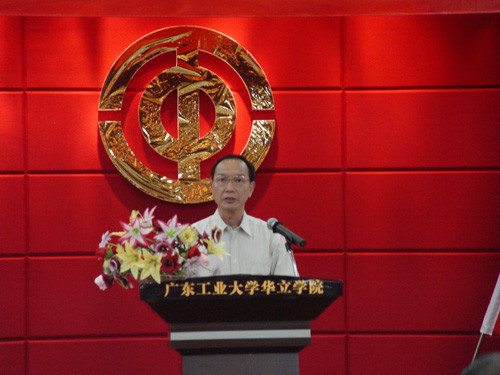 7月22日下午,学院第一届教职工代表大会暨工会会员代表大会(以下简称“双代会”)在图书馆3号学术报告厅隆重召开。出席大会校领导和特邀嘉宾有广东工业大学党委副书记、校工会主席刘大允,校工会常务副主席何国新,华立投资公司总经理叶雅明,华立投资公司董事长助理苏勇,以及各兄弟院校工会领导出席了本次大会。学院领导、院属各部门负责人列席代表及学院工会委员会委员参加了大会。