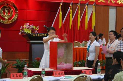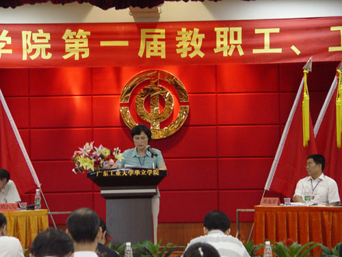 最后,大会通过广东工业大学华立学院第一届“双代会”决议,由当选学院第一届“双代会”委员会委员何淑珍进行了宣读。大会号召,全院教职工和工会会员要坚持以邓小平理论和“三个代表”重要思想为指导,全面贯彻落实党的十七大精神和科学发展观,牢固树立社会主义荣辱观,倍加珍惜我们学院今天来之不易的大好发展机遇,自觉担负起时代赋予的历史重任,坚定信心,团结奋进,开拓创新,为实现学院第二个五年发展规划奋斗目标,为大力推行教学改革工作,建设高水平的教学型大学而努力奋斗。
